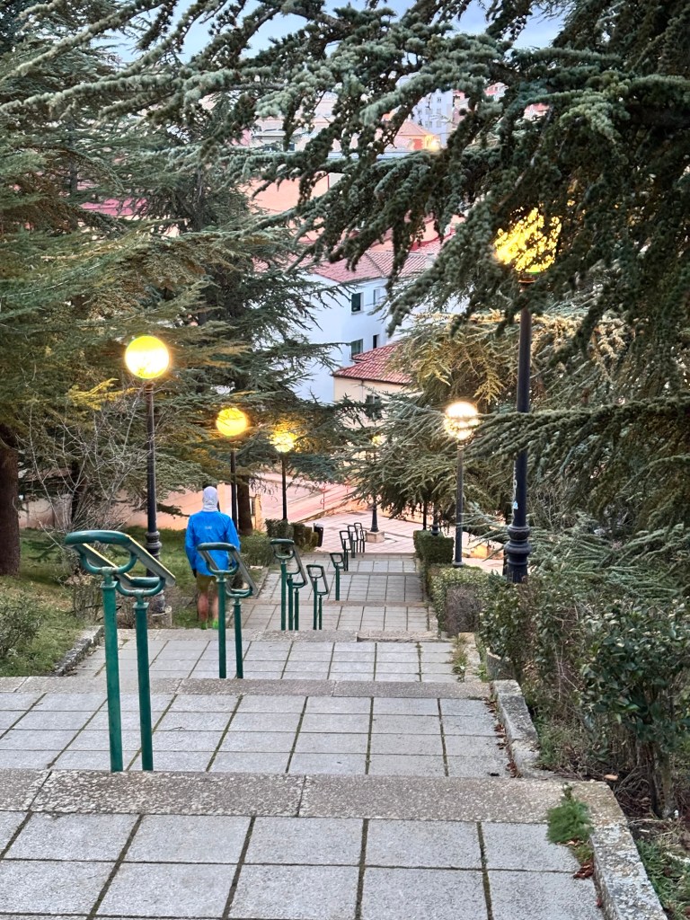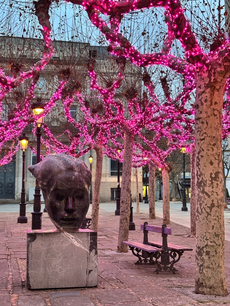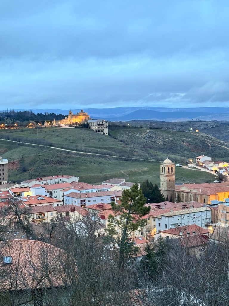 Ce n’est pas du soleil, mais ce n’est pas la pluie non plus qui nous accueille à Soria. Cette ancienne place forte est aujourd’hui une ville qui s’étire sur plusieurs collines. À quelques jours de la fête des rois, elle brille de toutes ses lumières LED et de ses décos de Noël.