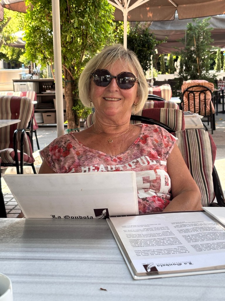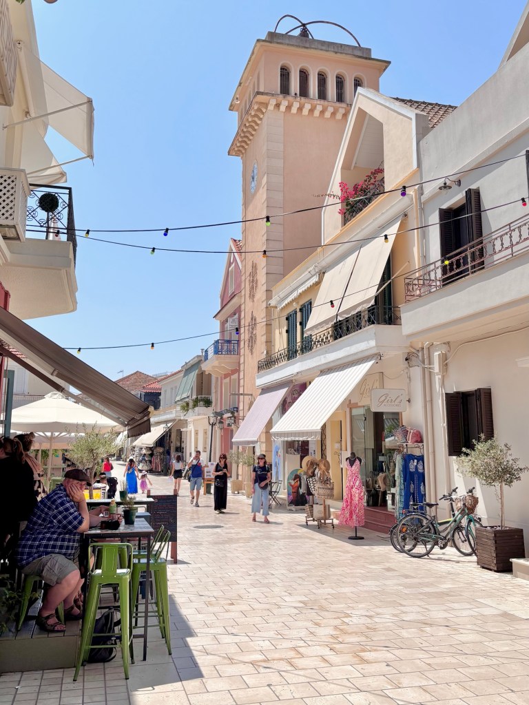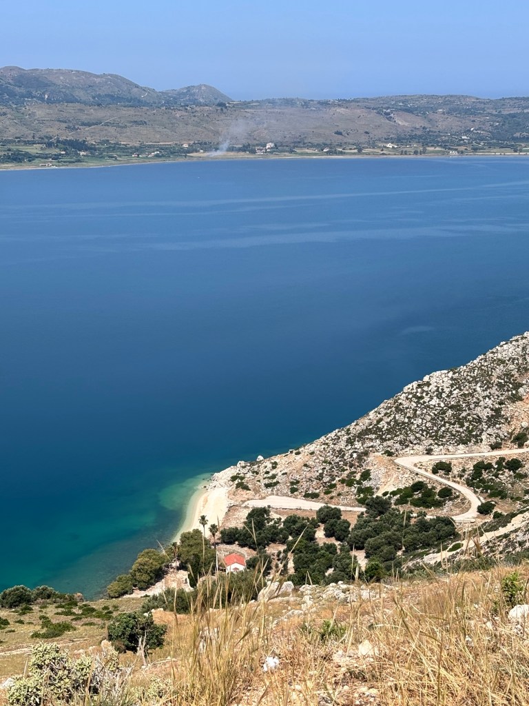 Les routes de Céphalonie sont belles, tortueuses certes mais bien entretenues. Aujourd’hui, avec 28 degrés, il fait trop chaud pour faire du pédalo.Pour éviter la canicule, il faudrait peut être faire de la plongée comme ce vélo…La rue piétonne d’Argostoli est animée , colorée et commerçante.À 13h, nous prenons un plat. Il est abondant et pas très cher. Le soir, c’est plutôt pique-nique.