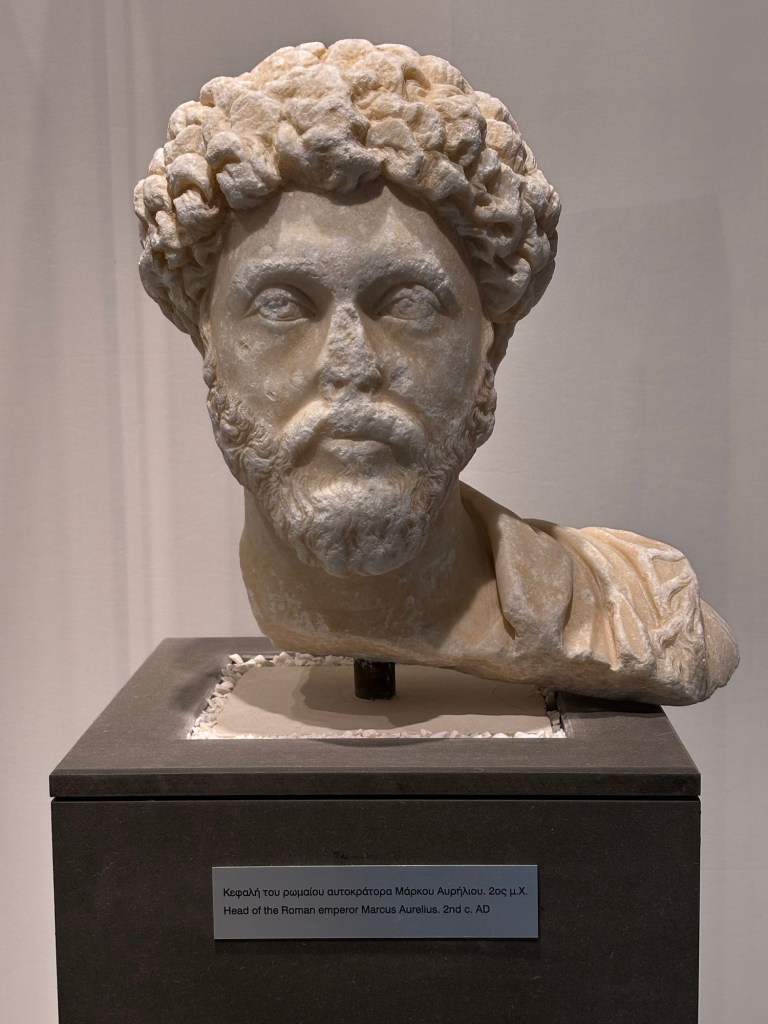 La canicule écrase l’Europe. Chaque arrêt a l’ombre est l’occasion de prendre un verre de plaisir.Toujours admiratif des paysages marins et des hommes qui ont entrepris de nouvelles aventures. Sénèque et Marc Aurèle (ci-dessus) ont marqué mon adolescence et mes pensées : ni enthousiasme débordant ni pessimisme !