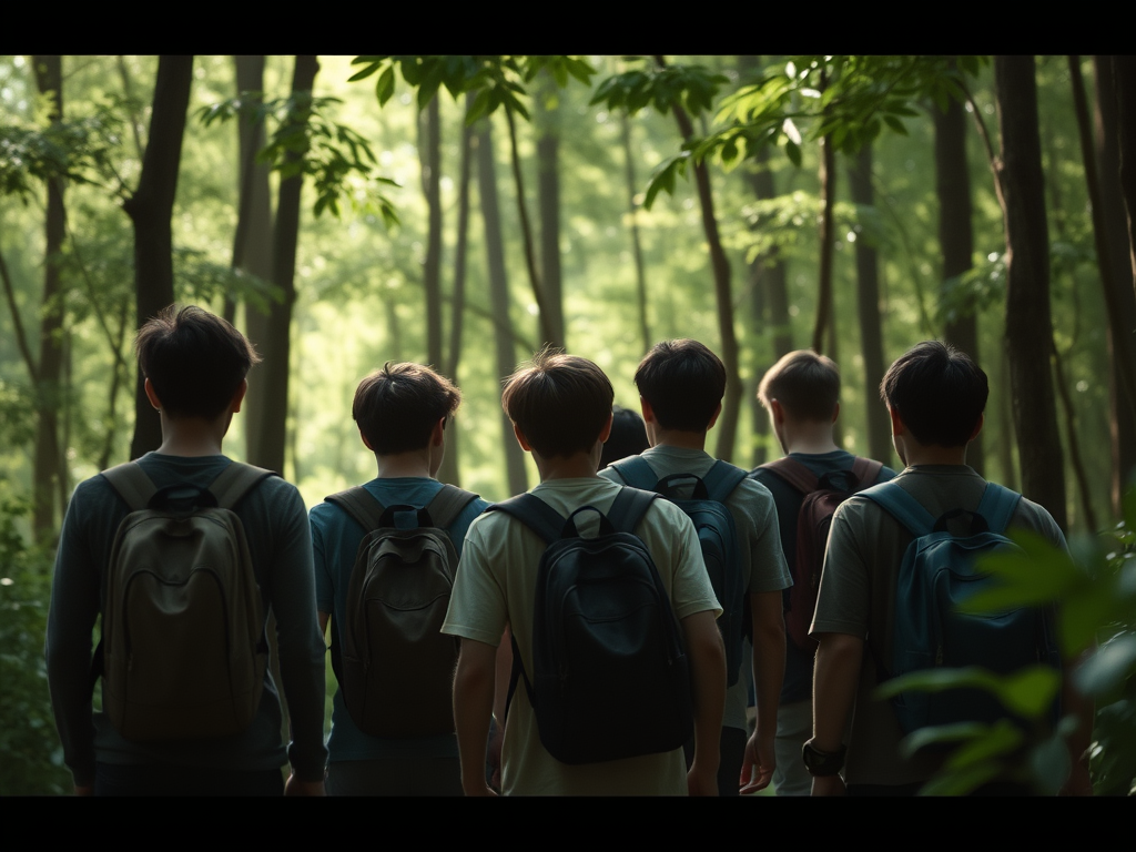 L’air bruissait. Le soleil enflammait les cœurs. Et le chant secret de chacun, martelé par le rythme soutenu des pas, nous faisait répéter la même ritournelle, inlassablement. Le sentier suivait de vastes champs pour traverser parfois des bosquets épars, échevelés, touffus à la base. Un écureuil effarouché par la sauvagerie de notre armée traversa une zone exposée puis se jucha sur quelque branche pour nous espionner. Tout au long de notre progression, un silence inquiétant écrasait peu à peu la vie sereine et bruyante de la forêt. Çà et là, des pies et des geais, toujours curieux, toujours apeurés, s’enfuyaient en criant des injures en leur langage. C’en était fait de la vie et du mouvement. On ne bronchait plus, les prunelles rivées sur l’angoisse. Le monde animal se méfiait, sachant trop bien que l’homme est dangereux même quand il semble pacifique ou innocent. Ce silence nous tombait sur les épaules et nous drapait dans une sorte de suaire. Notre équipée sauvage se transformait peu à peu en aventure dangereuse, hors la loi.