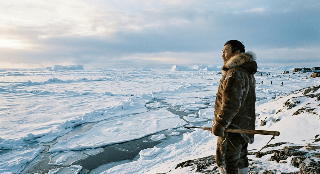 Toupik est angoissé. Va-t-il enfin voir apparaître là-bas, au loin sur la banquise, l’ombre de son fils ? La plaine est immense. Quelques blocs à peine surélevés pourraient cacher pendant quelques secondes un marcheur. Il a regardé la ligne de l’horizon plus claire. Il a levé les yeux plus haut vers le ciel. Tout un monde de relations peut s’établir entre les vivants et les morts. Seule la déesse de la mer ne paraît pas, enfouie dans les noirs abysses en attente du prochain été. Une pâle lumière inonde le monde glacé.