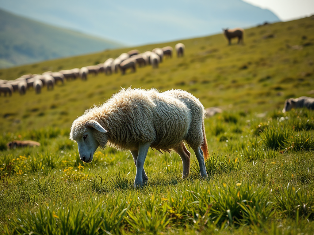 Il y avait quand même un jeune mouton qui n’arrivait pas à penser comme les autres. Si le troupeau montait sur la colline, il voyait l’herbe plus verte et plus abondante en bas. Si les agneaux avaient faim, il pensait que les mères étaient ingrates. Et si les agneaux tétaient longuement, il redoutait un tel gaspillage.